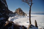 From Chushir we again cycled to the North Cape of Olchon Island and then followed the lonely East coast. This part of the trip was particularly impressive. We enjoyed the remote shore landscape and the almost blank ice conditions for cycling. On this section we did not meet any other humans, but saw many tracks of wolves. We then continued on along the West coast of Lake Baikal towards Listvianka. Again this section was very diverse and attractive with its steep cliffs and ice-covered rocks. From Bolshoje Goloustnoje on we sometimes met other people on the lake, such locals with their cars, and some other tourists who were hiking on the ice. In these cases, we were then seen as an attraction for them.