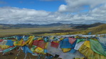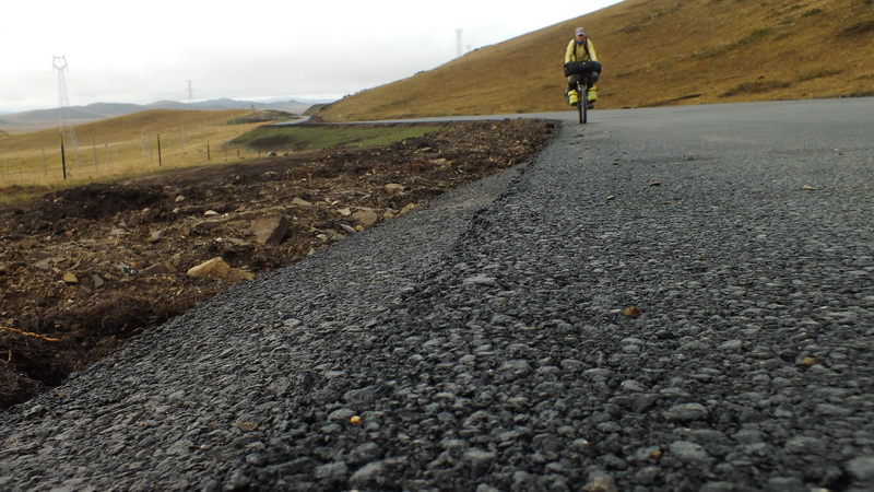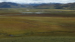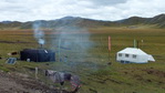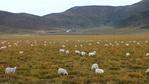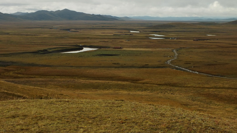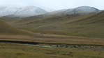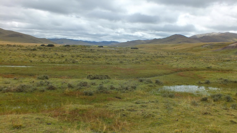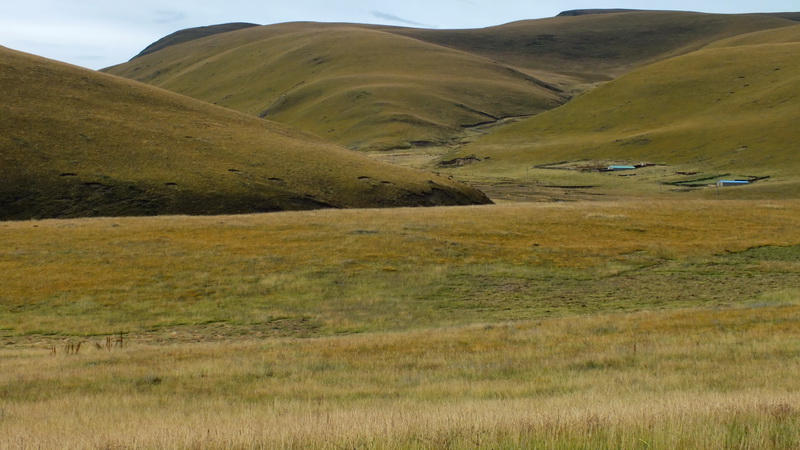 Es geht immer weiter, bergauf, bergab, durch das weite Grasland. An das Wetter habe ich mich nun auch gewöhnt: Gegen Mittag reißt die Wolkendecke meist auf, und es wird für zwei bis drei Stunden richtig heiß. Dann, am späteren Nachmittag ziehen verdammt schnell Wolken auf, und wenn mein Zelt bis 16:30 nicht aufgebaut ist, muss ich es im Regen aufbauen. Nachts regnet es dann. Teilweise schüttet es so stark, dass einem Angst werden kann. Am nächsten Morgen ist es wieder trocken, der Himmel aber bis Mittag dicht bewölkt. Das Zelt muss ich immer nass einpacken, aber es trocknet nachmittags im Wind recht schnell, wenn ich es eben rechtzeitig vor dem abendlichen Regen aufgebaut habe. Geschneit hat es aber nicht noch einmal.