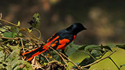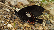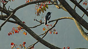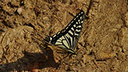 Für den Rest des Tages geht es nun stetig und kurvenreich bergauf. Meinen ersten Zeltplatz finde ich dann auch im Wald. Insekten und andere Krabbeltiere gibt es jetzt in der Trockenzeit recht wenig, das soll mir gerade recht sein. Nur an einem Baum entdecke ich eine Straße an roten Ameisen. Im Abendlicht beobachte ich dafür zahlreiche Vögel, die in den blühenden Bäumen nach Nektar saugen. Es gibt außerdem kleine, schwarze Affen, allerdings sind diese zu flink für meine Kamera, oder ich bin einfach zu langsam. In der Dämmerung huschen auch noch einige Fledermäuse vorbei. Im Zelt liegend lausche ich den Geräuschen des Waldes: Vögel, Zikaden, Affen…