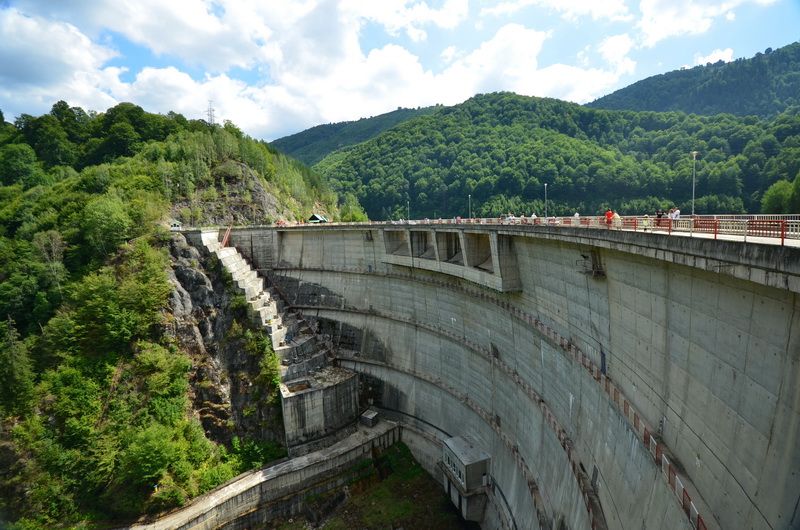 Im Dorf Jina hat die lange Steigung zunächst ein apbruptes Ende. Es folgt eine rasante Abfahrt in ein Tal, dem ich für den Rest des Tages dann wieder bergauf folgen werde. Die Straße im Sebes-Tal ist die "Transalpina" eine gut ausgebaute Teerstraße, die bis nach Novaci am Südrand der Karpaten führt. Die Straße ist gut zu fahren, ich komme zügig voran, obwohl es stetig bergauf geht. Einige Stauseen gibt es, erst Tau Bistra, dann Oasa Mica. Die Wasserspiegel sind niedrig, es zeugt von dem trockenen Sommer hier.