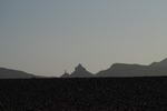 Vormittags geniessen wir nocheinmal die Faszination der Steinwüste und dieser gebauten Piste. Schwarze Steine, soweit man blicken kann, in der Ferne Tafelberge. Die Piste zieht sich als breites, helles Band durch die Landschaft. Wir kommen in einer Senke an einem Brunnen vorbei, und sind etwas überrascht, da dieser nicht in den alten französischen Karten eingezeichnet ist. Wir probieren das Wasser – es ist kühl und schmeckt gut und wir füllen unsere Trinkflaschen auf. Gegen mittags erreichen wir das Fort, wo einige Soldaten ihren einsamen Dienst schieben. Die sind froh über die Abwechslung und treiben scherze mit uns. Wir müssen uns in ein Buch eintragen, dort sehen wir, wir nicht die einzigen Radfahrer sind, die diese Piste unter die Reifen nehmen. Andere Deutsche, Belgier, Russen, etc. haben sich in den letzten Wochen hier eingetragen.