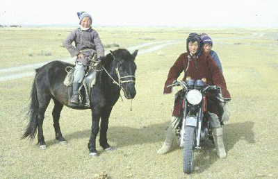 Follow our bike tour through the steppe (pictures 1 and 2), around the Changai Mountains, into the Gobi desert (pictures 3 to 13), and the mountain range near Dalanzadgad (pictures 14 and 15).