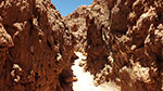 Endlich bin ich oben, und nun kann ich die Fahrt vorbei an steilen, roten Lehmwänden und über weiße Salzflächen auch genießen. Belohnt werde ich dann auch noch mit einer langen Abfahrt. Es folgen dann aber noch einmal quälende fünf bis sechs Kilometer auf einer Wellblechpiste, ohne Schatten. Meine Energiereserven sind schon längst verbraucht. Mein Wasser ist auch fast leer, und mir wird schlecht.