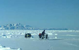ich hier ersparen! Um auch einmal etwas anderes zu machen als nur zu Radeln, wanderten und angelten wir und knüpften Kontakte zu Einheimischen. Da wir die Winterattraktion in den einsamen Siedlungen waren, wurden wir häufig zum Essen und Teetrinken eingeladen. Selbst auf Kindergeburtstagsfeiern mußten wir erscheinen, als „special guests“. So hatten die Inuit, die sich mit uns einen Nachmittag lang unterhielten, genug Gesprächsstoff für den Rest des Winters und wir den Vorteil genauer Einblicke in ihren Alltag. |