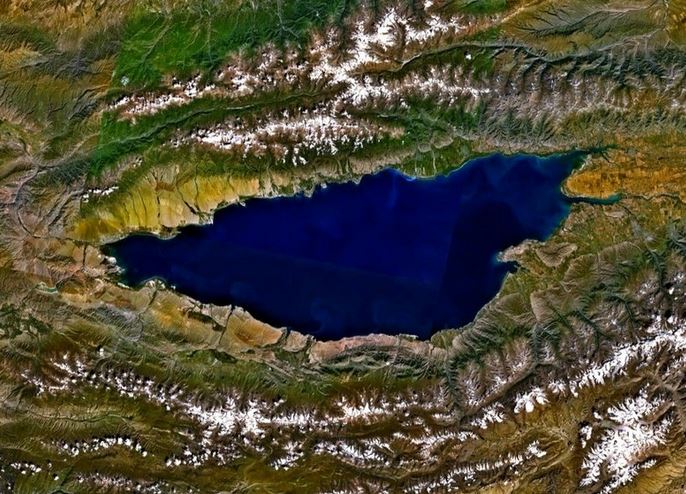 Der Issyk Kul ist der größte See Kirgistans und mit 6236 km2 nach dem Titicacasee der zweitgrößte Gebirgssee der Erde. Der See ist 182 km lang, 60 km breit, bis zu 668 m tief. Er liegt auf 1607 m Höhe und wird umrahmt von den Bergketten des Kungej-Alatau im Norden und des Terskey-Alatau im Süden, beides Gerbirgszüge des Tien Shan. Eine Besonderheit ist, dass der Issyk Kul im Winter NICHT zufriert.