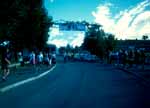 über die Ziellinie. Ah! Da ist schon das Eisstadion in Sicht.